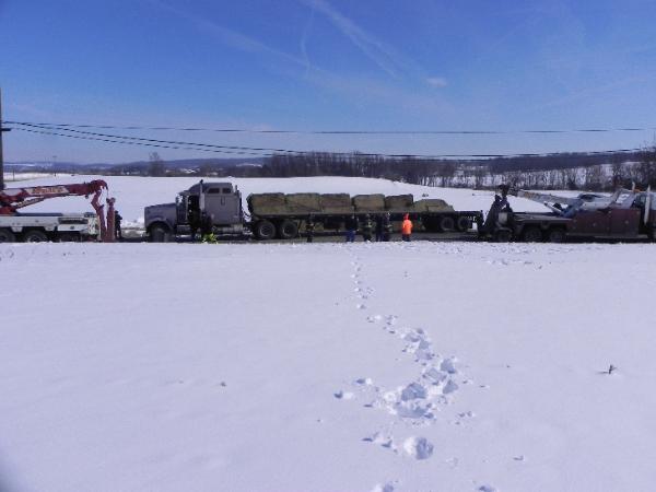 November, 17, 2011 Loaded leaning tractor trailer Route 272, Little Britian.