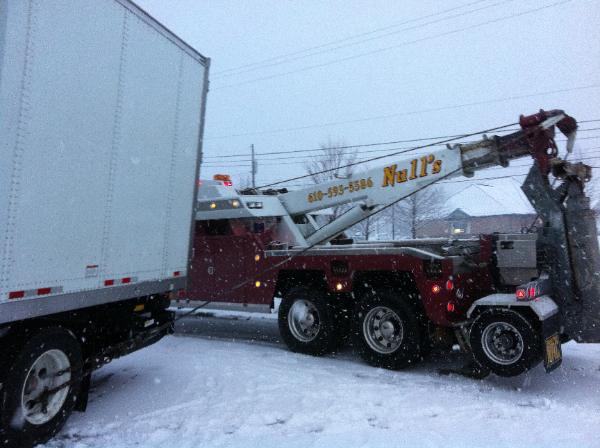 December 7, 2011 Stuck loaded tractor trailer in the Lower Valley Business District.